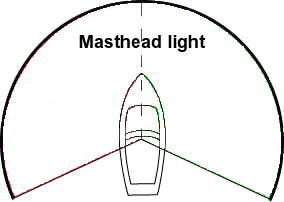 A sailing vessel that is moving shows the same sidelights and sternlight as a powerboat, but does not show a masthead light. A vessel with sails up, but also being propelled by machinery must show the power-driven vessel 'running lights'